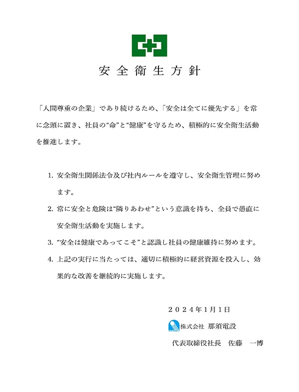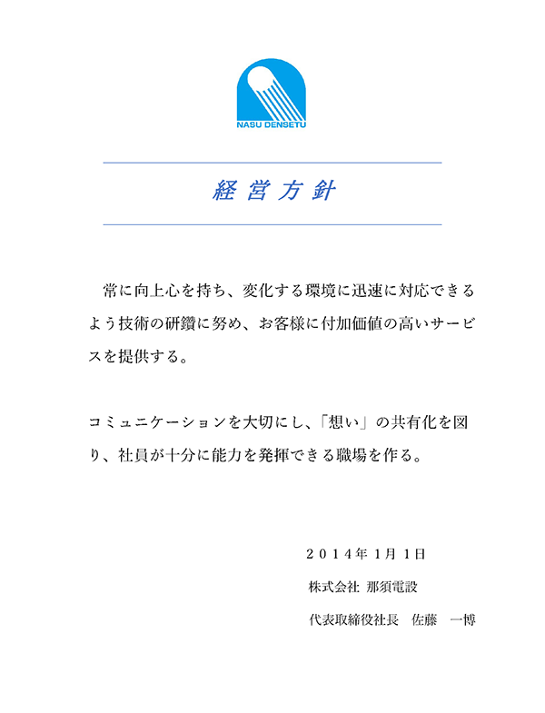| 創業後の沿革 | (有)那須電設設立 (資本金50万円) | 昭和47年12月26日 |